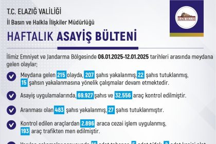 Elazığ’da Haftalık Asayiş Raporu Açıklandı