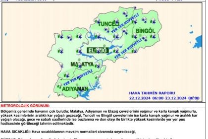 Meteoroloji 13. Bölge Müdürlüğü, Elazığ, Malatya, Bingöl, Tunceli ve Adıyaman için kuvvetli…