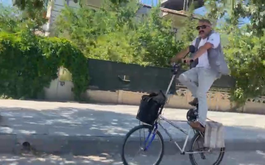 Görüntüler kısa sürede sosyal medyada paylaşılırken, vatandaşın bisikleti ve rahat sürüşü, izleyenlerin ilgisini çekmeye devam ediyor.