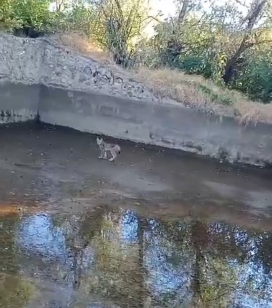 Dünya Doğa ve Doğal Kaynakları Koruma Birliği’nin (IUCN) kırmızı listesinde yer alan vaşak, vatandaşlar tarafından havuz kenarında fark edilerek cep telefonuyla görüntülendi. Görüntülerde, vaşağın bir süre havuz çevresinde dolaştığı, ardından ise çevredeki ormanlık alana doğru ilerleyerek gözden kaybolduğu görülüyor.